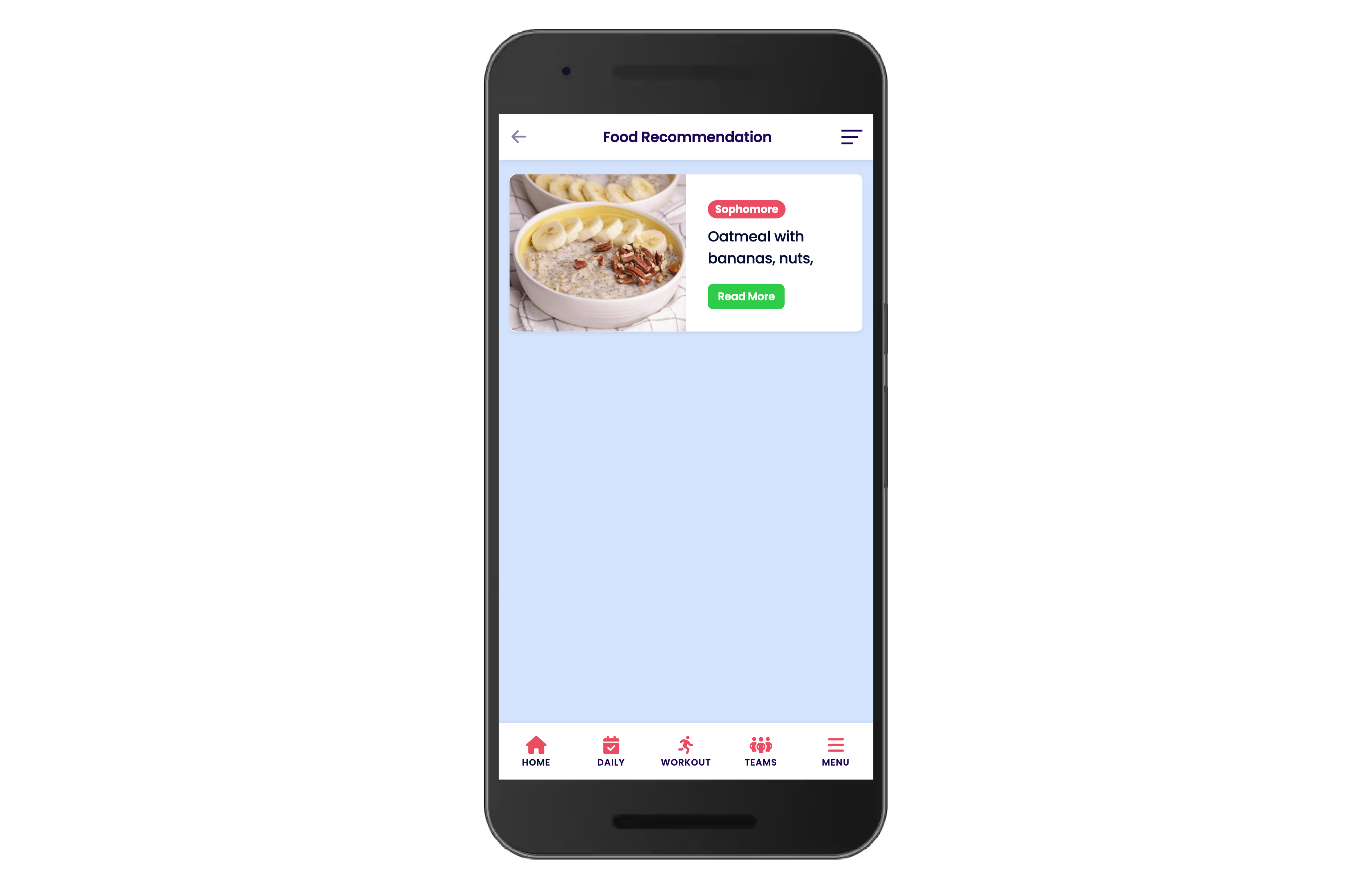 Nutrition Guide: View assigned meal plans (e.g., "Oatmeal with bananas... for Breakfast") with explanations.