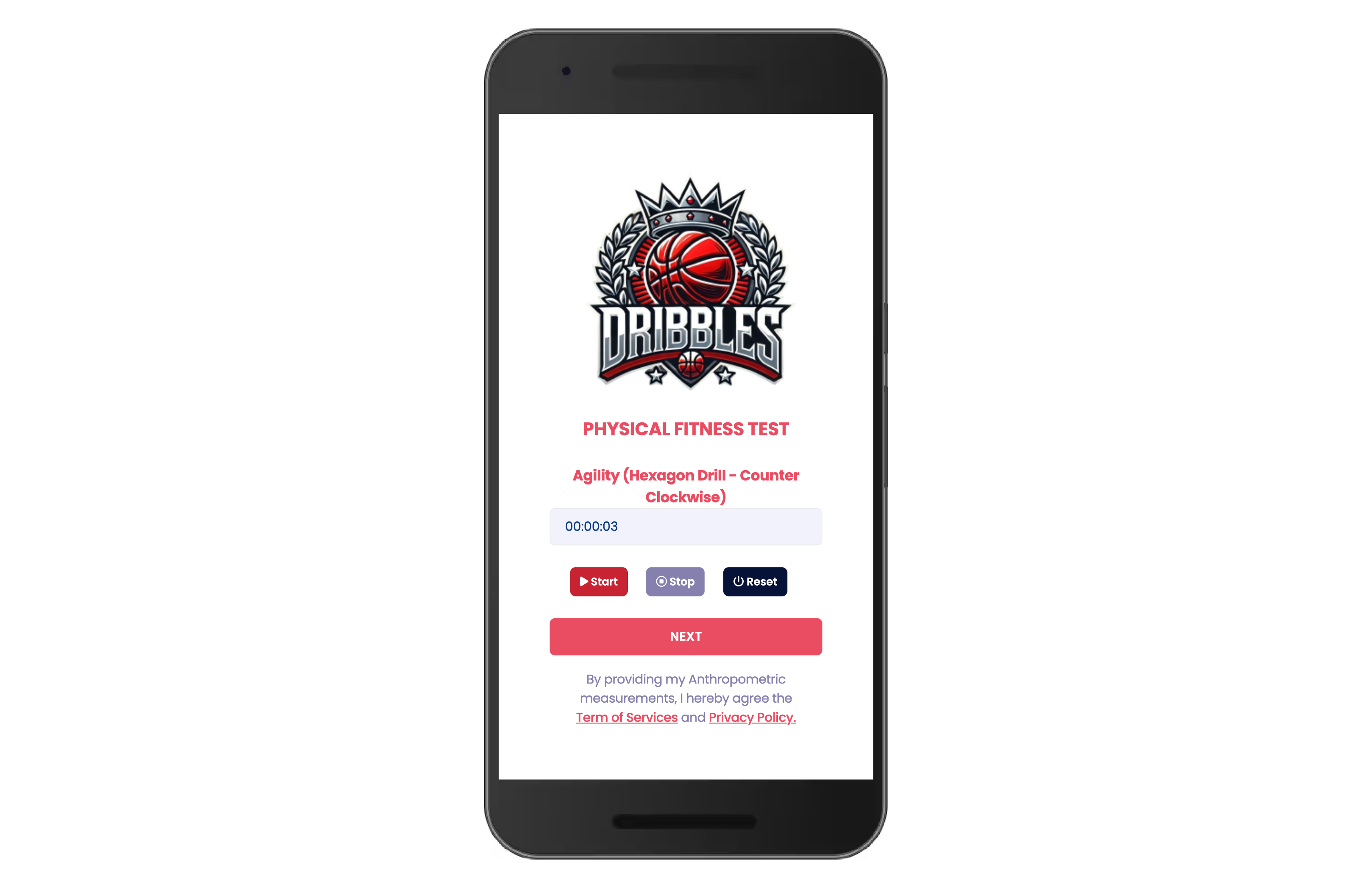 Guided Assessment: Step-by-step input for all physical and skill tests.