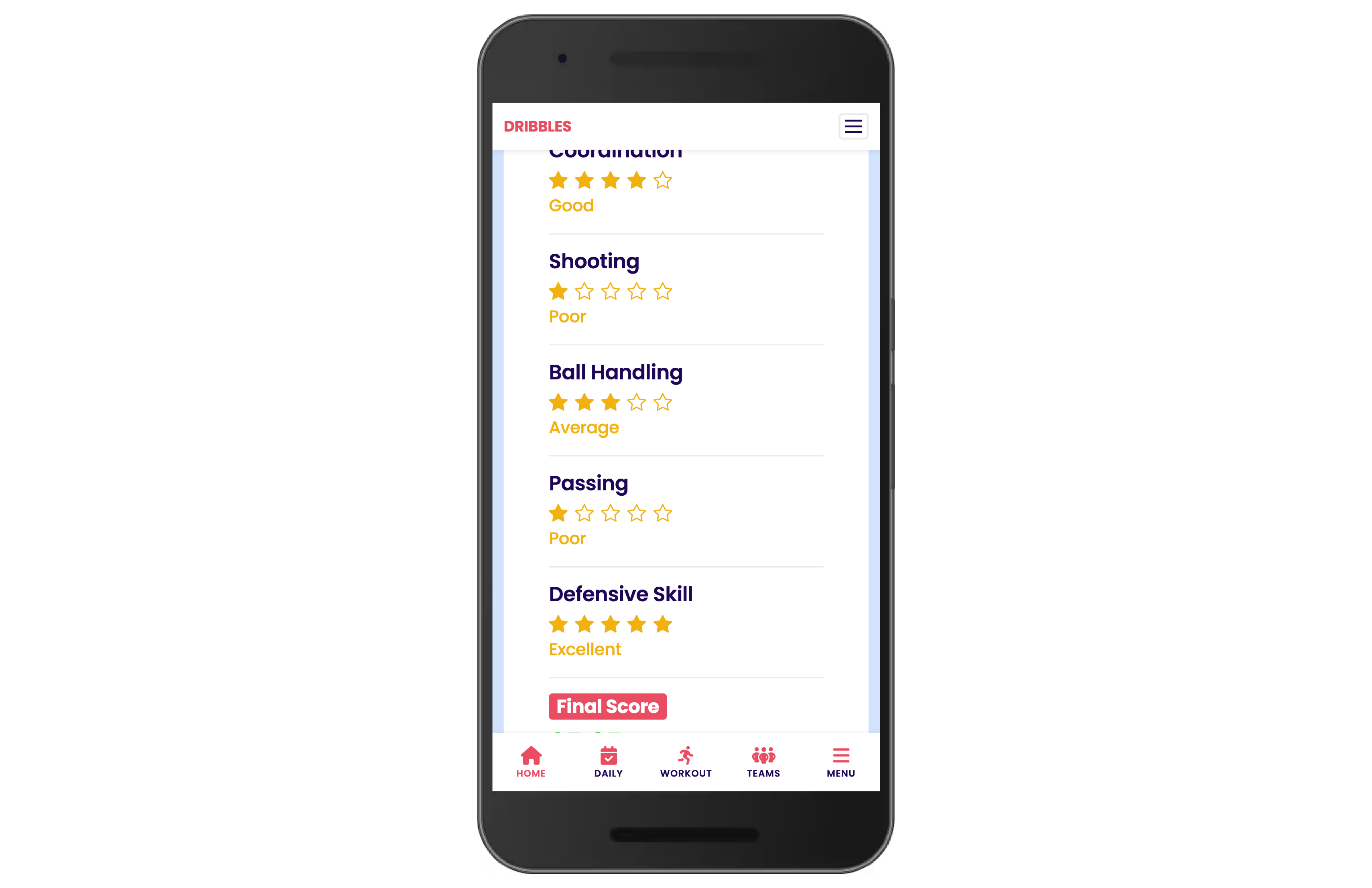 Daily Challenges: Quick, motivational tasks (e.g., "10 Full Court Sprints") to maintain engagement.