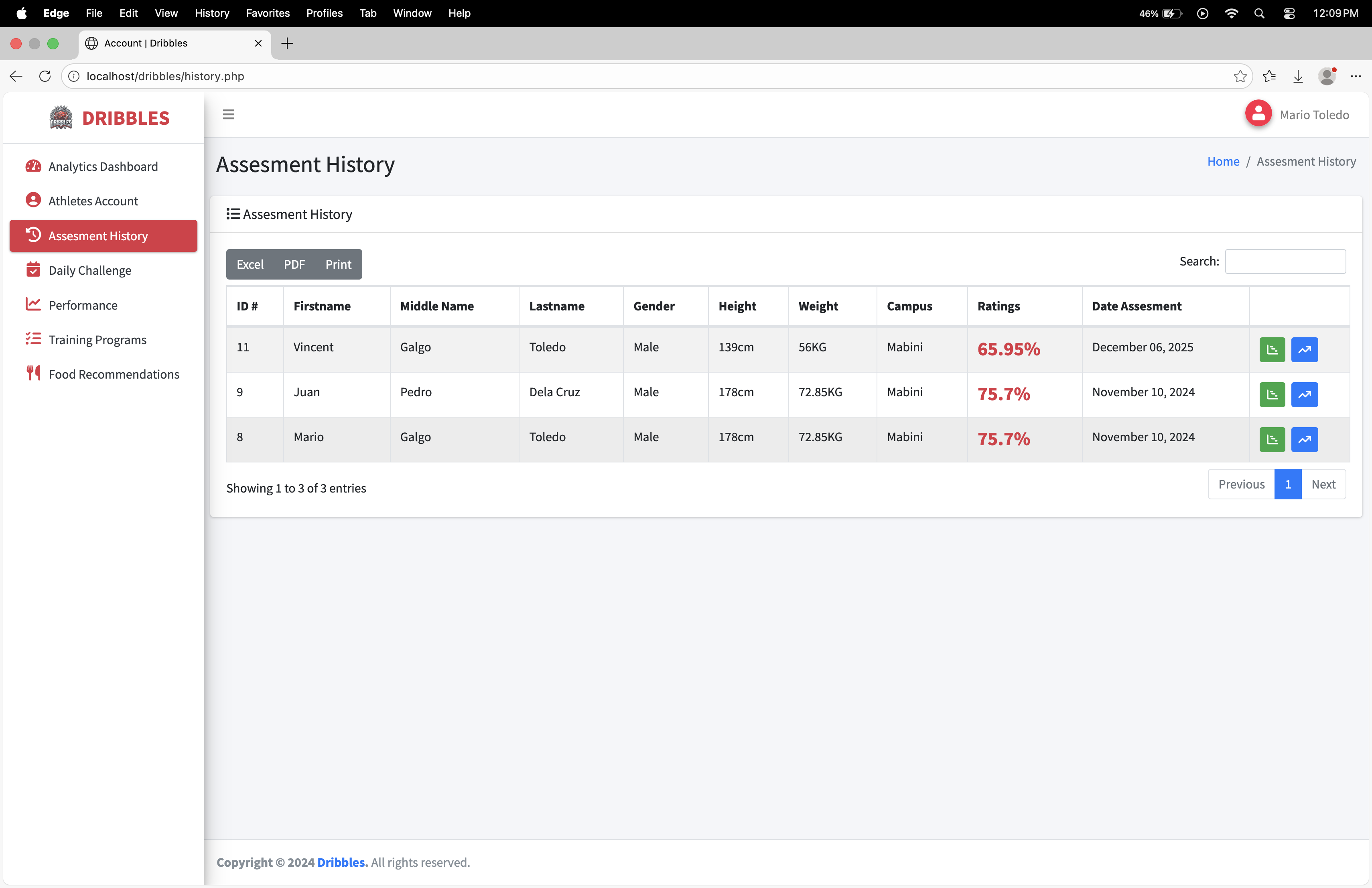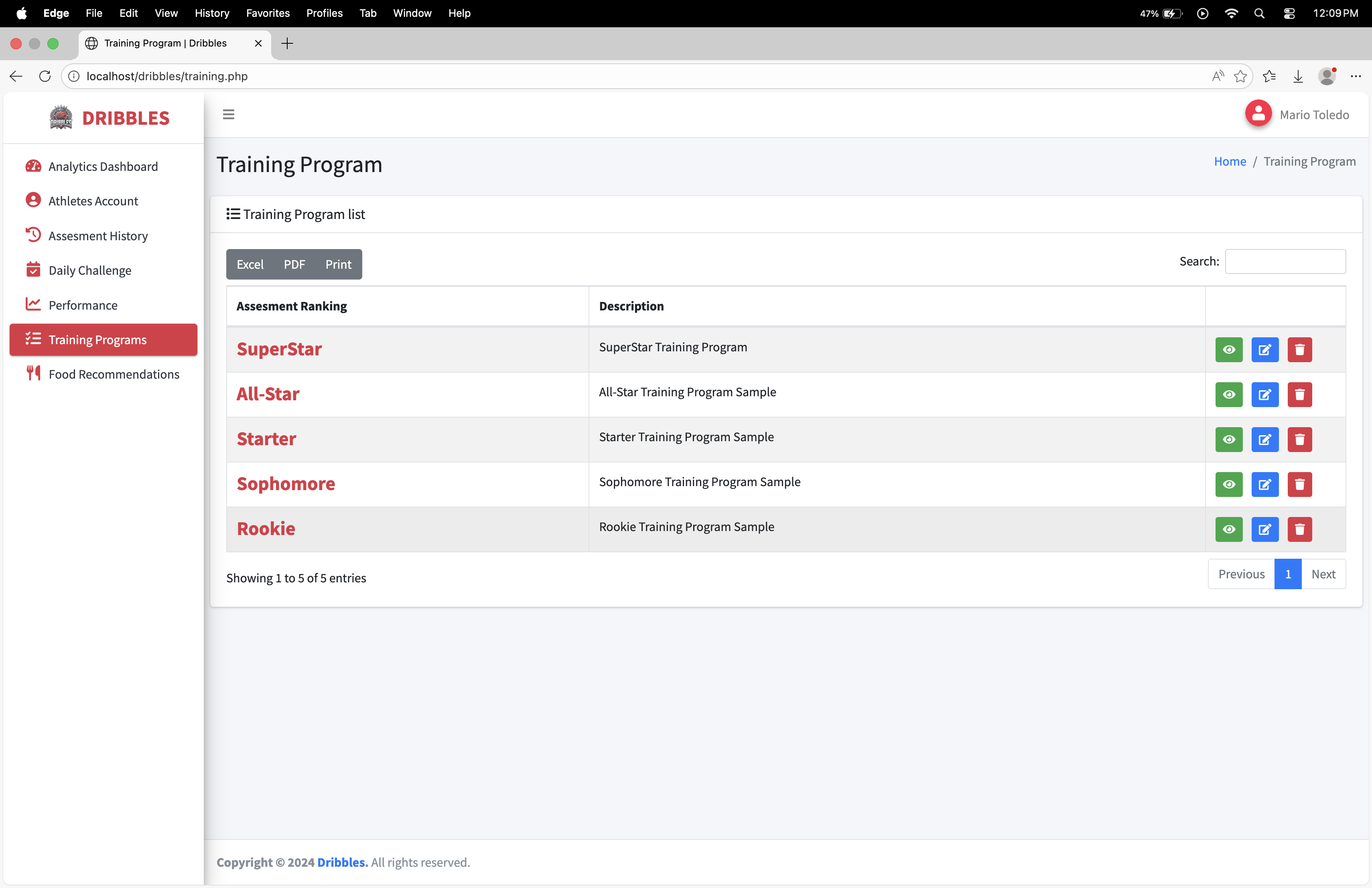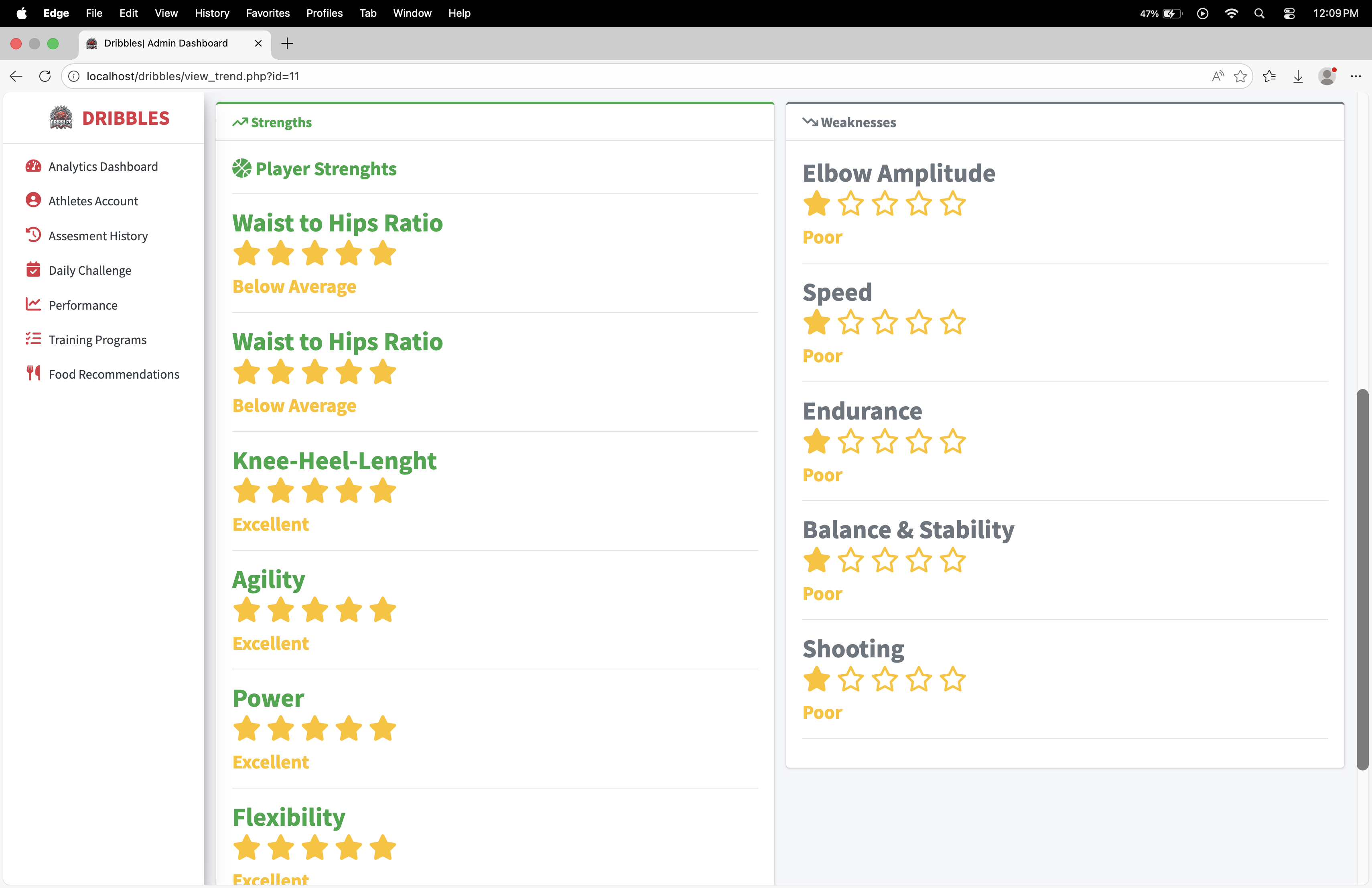 Dribbles is a comprehensive, data-driven athlete management and development platform designed specifically for basketball student-athletes, such as those at BSU Malvar. The system bridges the gap between raw potential and structured growth by transforming personal athletic data into actionable, personalized training and nutrition plans.