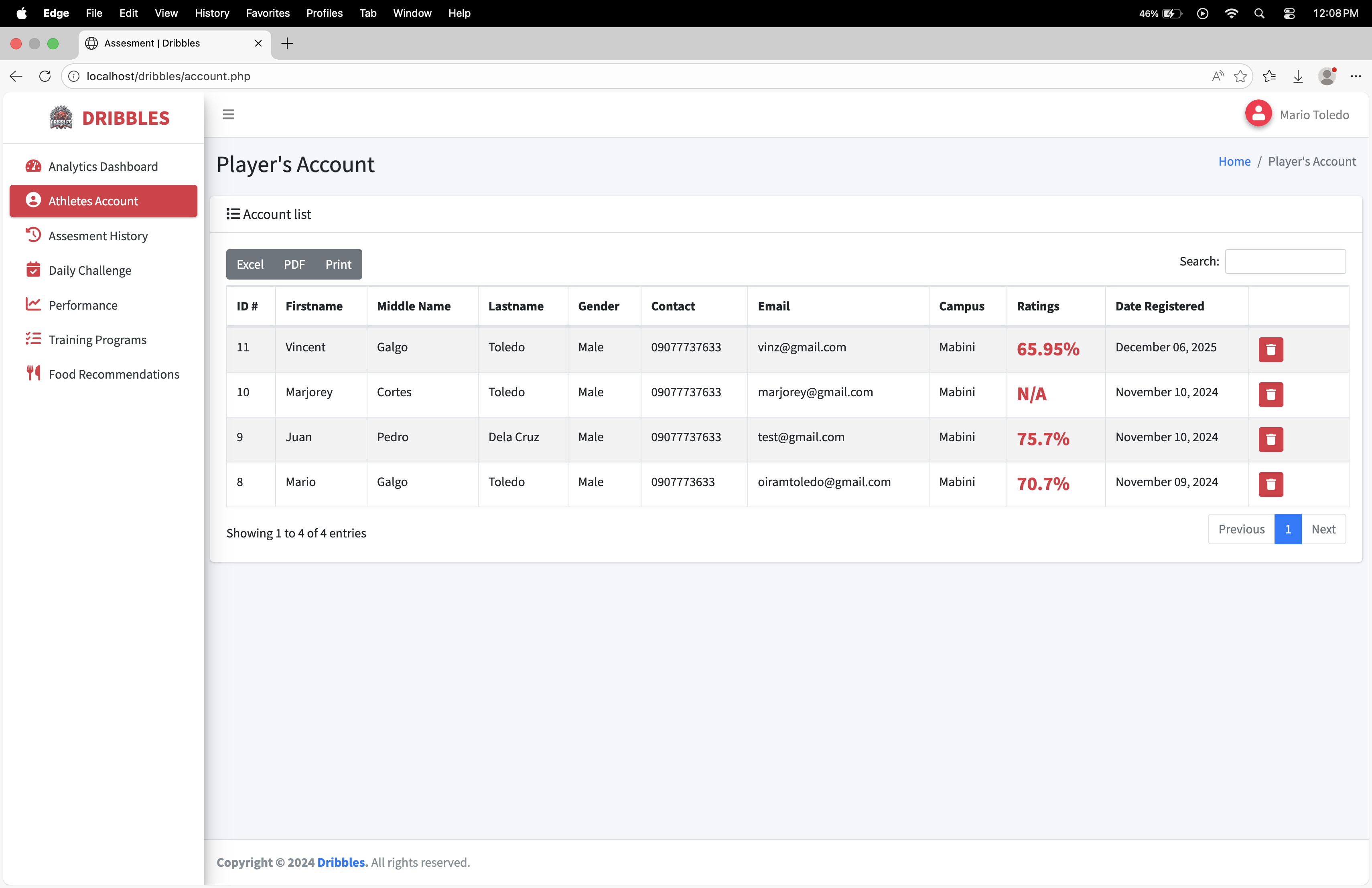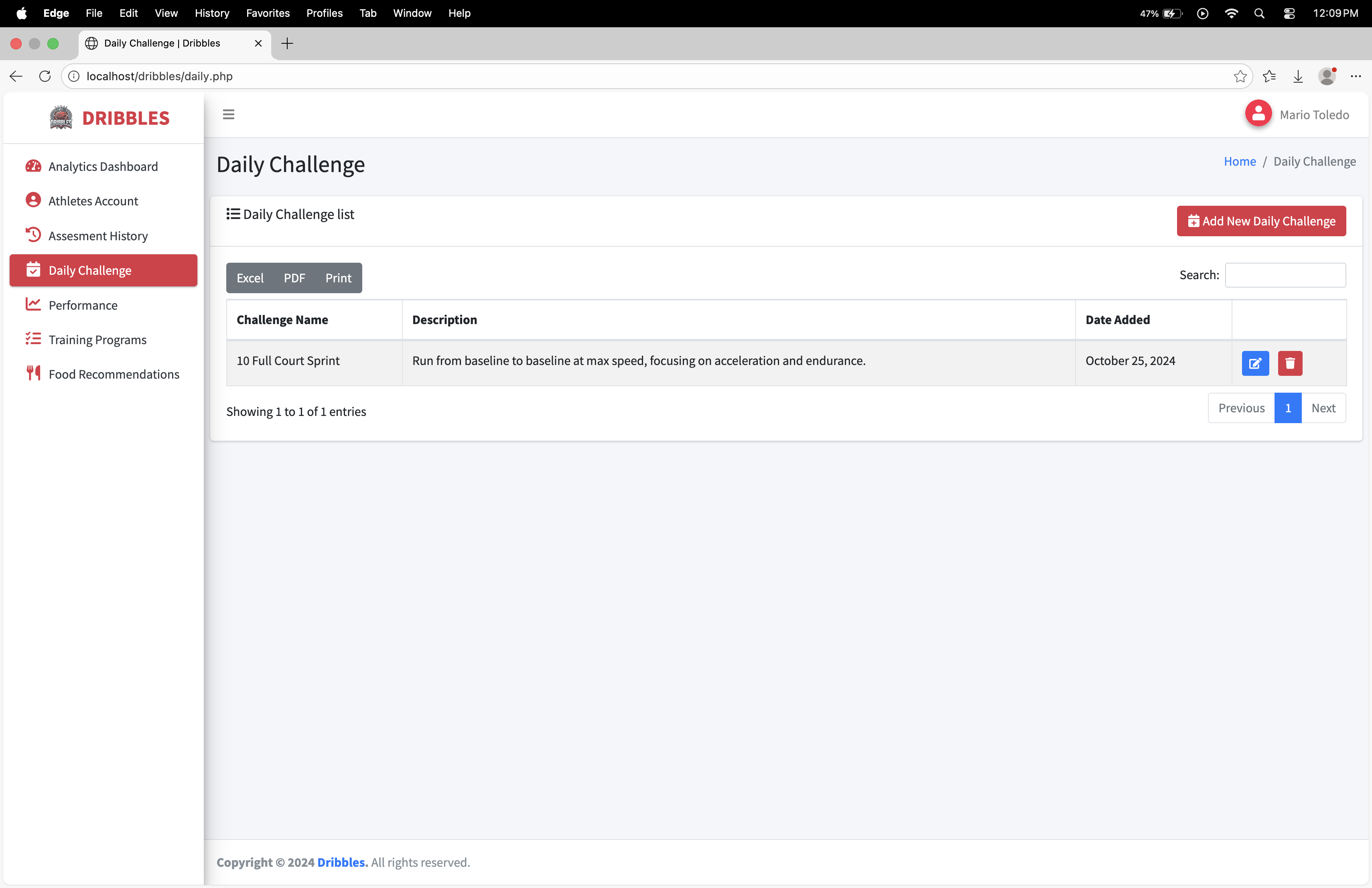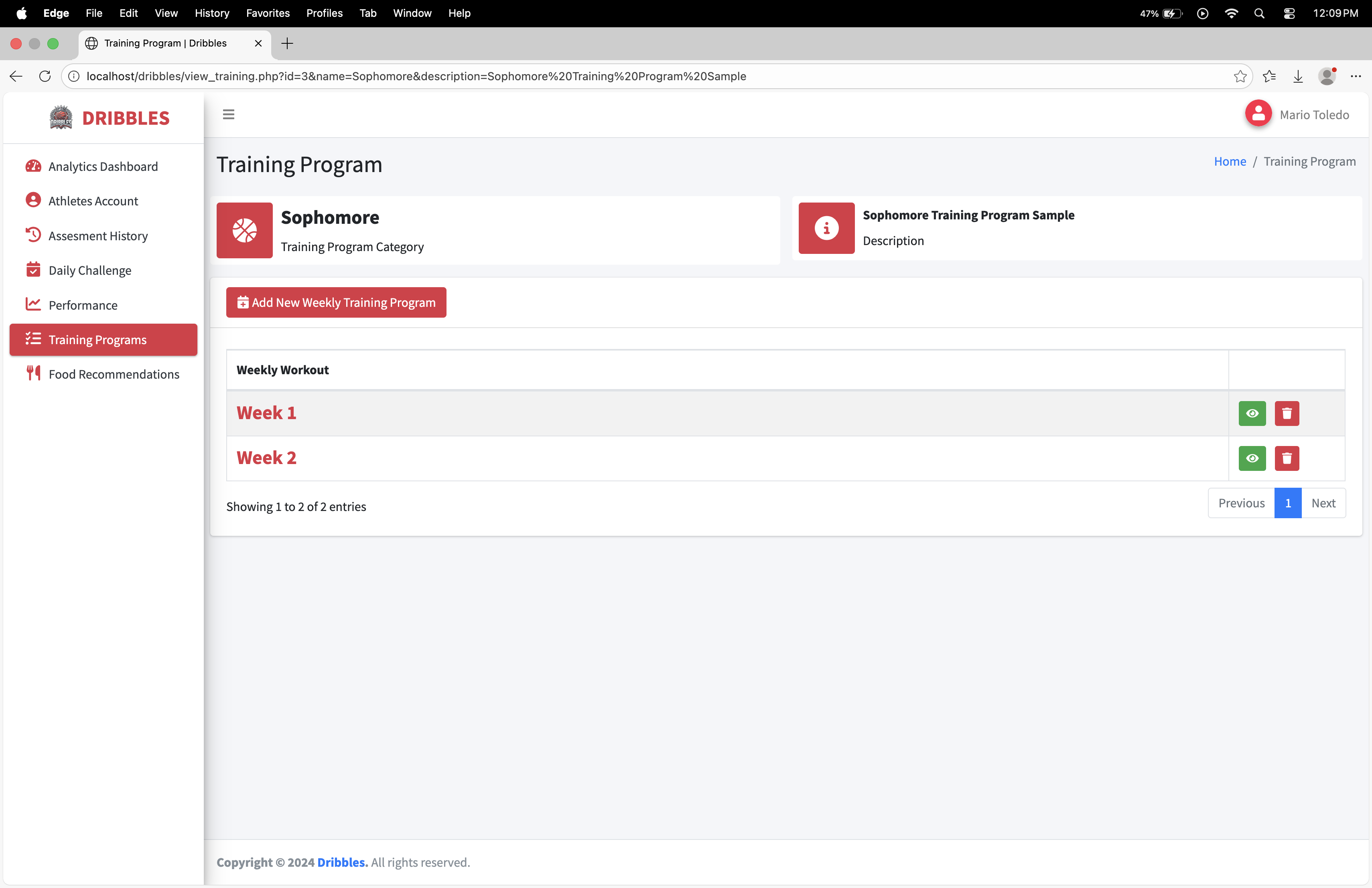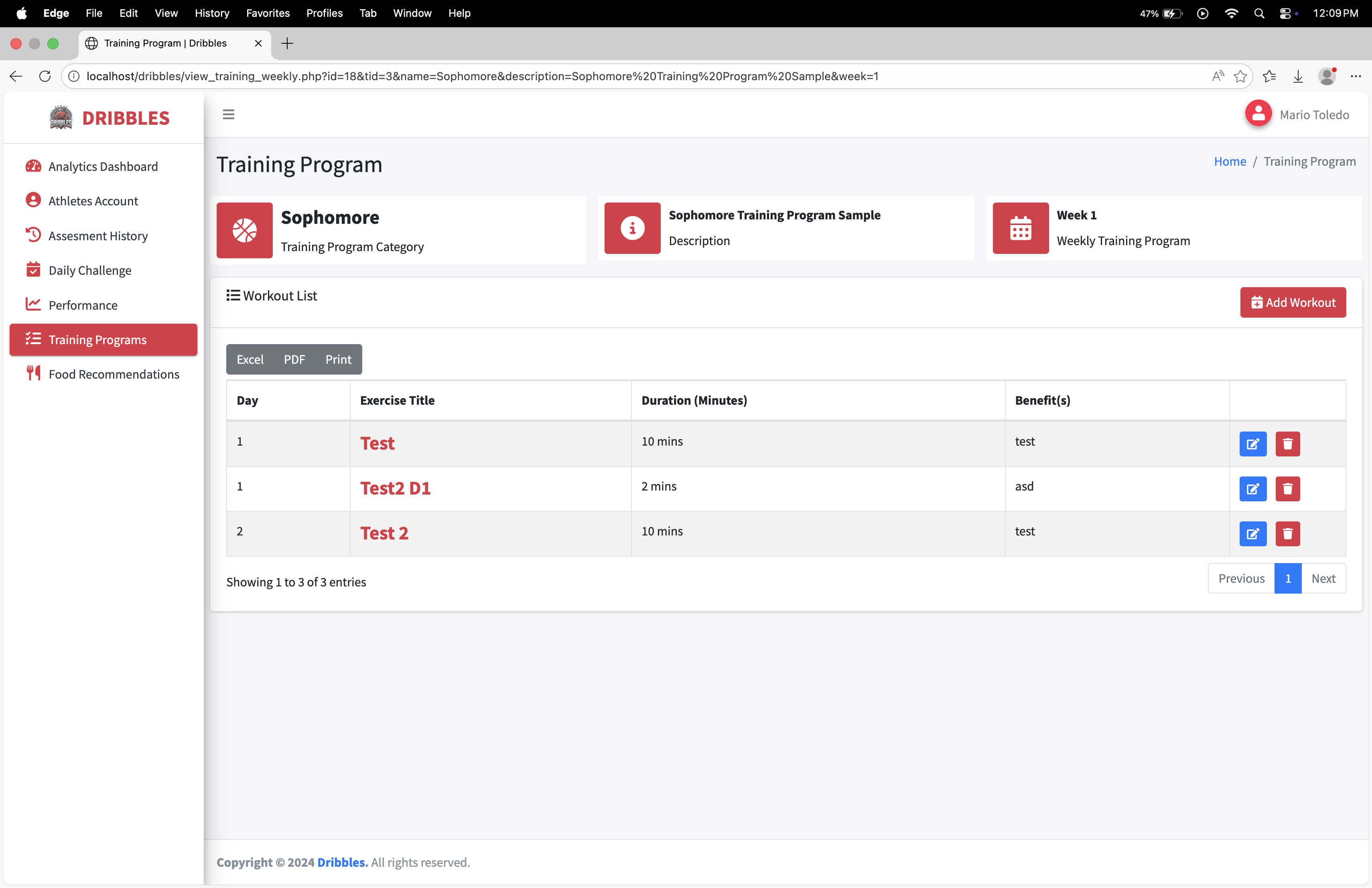 Dribbles is a comprehensive, data-driven athlete management and development platform designed specifically for basketball student-athletes, such as those at BSU Malvar. The system bridges the gap between raw potential and structured growth by transforming personal athletic data into actionable, personalized training and nutrition plans.