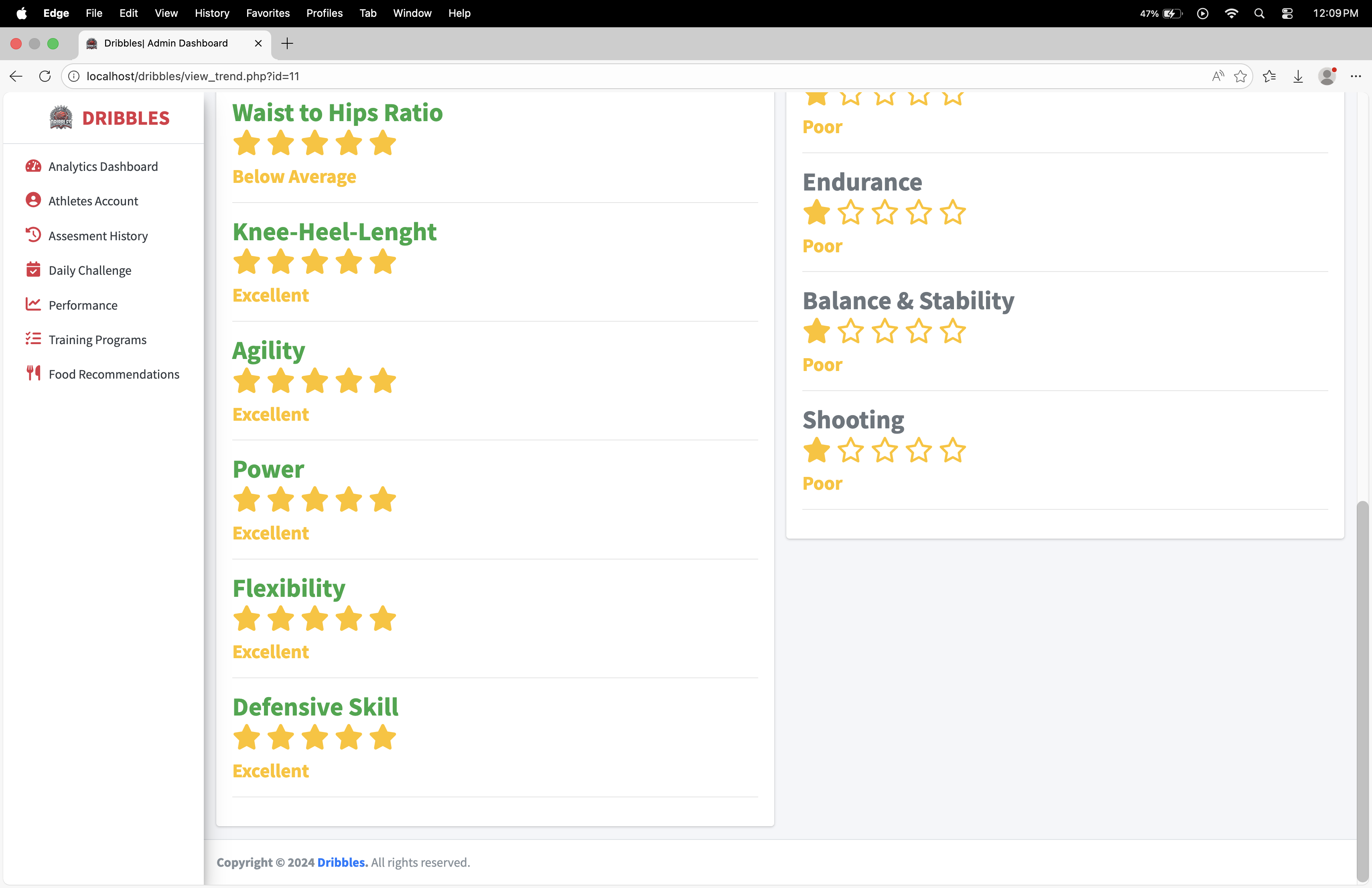 Dribbles eliminates guesswork from athlete development. It provides student-athletes with a clear, personalized roadmap to improve based on their current level. It empowers coaches with deep data insights to make informed decisions, tailor team training, and track the development of every individual efficiently. By combining assessment, personalized planning, and progress tracking into one system, Dribbles aims to elevate the performance and management of basketball programs systematically.