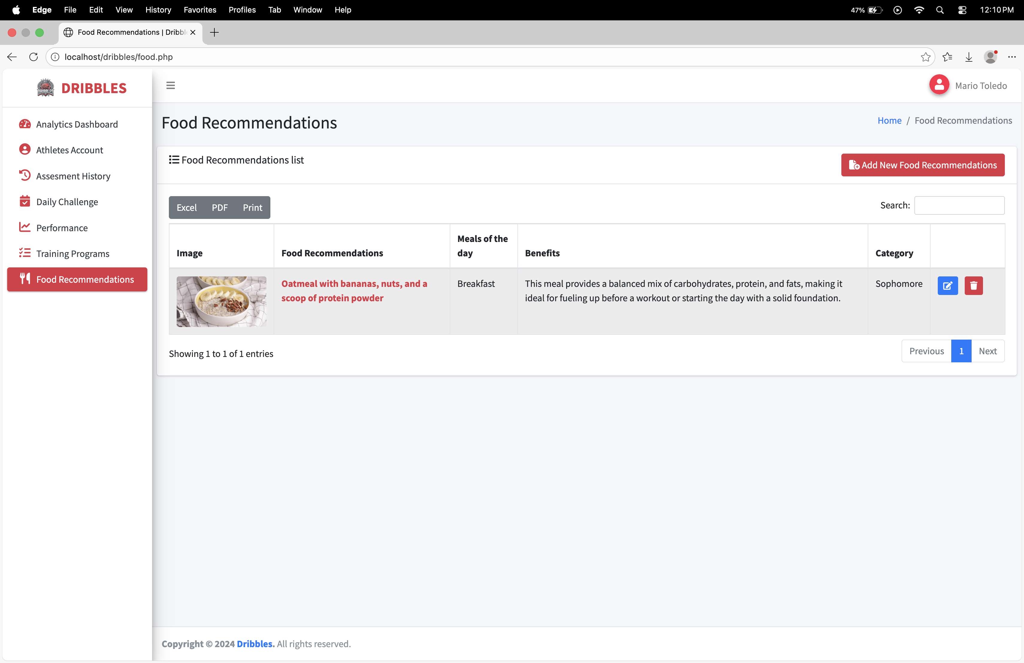 Manage Food Recommendations: Assign specific meals and nutrition plans to different athlete categories.